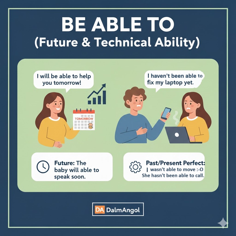 Jövő időbe CSAK a "be able to" alakot tudjuk tenni. Tehát ha pl. azt akarom mondani, hogy "Holnap fogok tudni segíteni neked", azt úgy mondjuk, hogy "I will be able to help you tomorrow.".